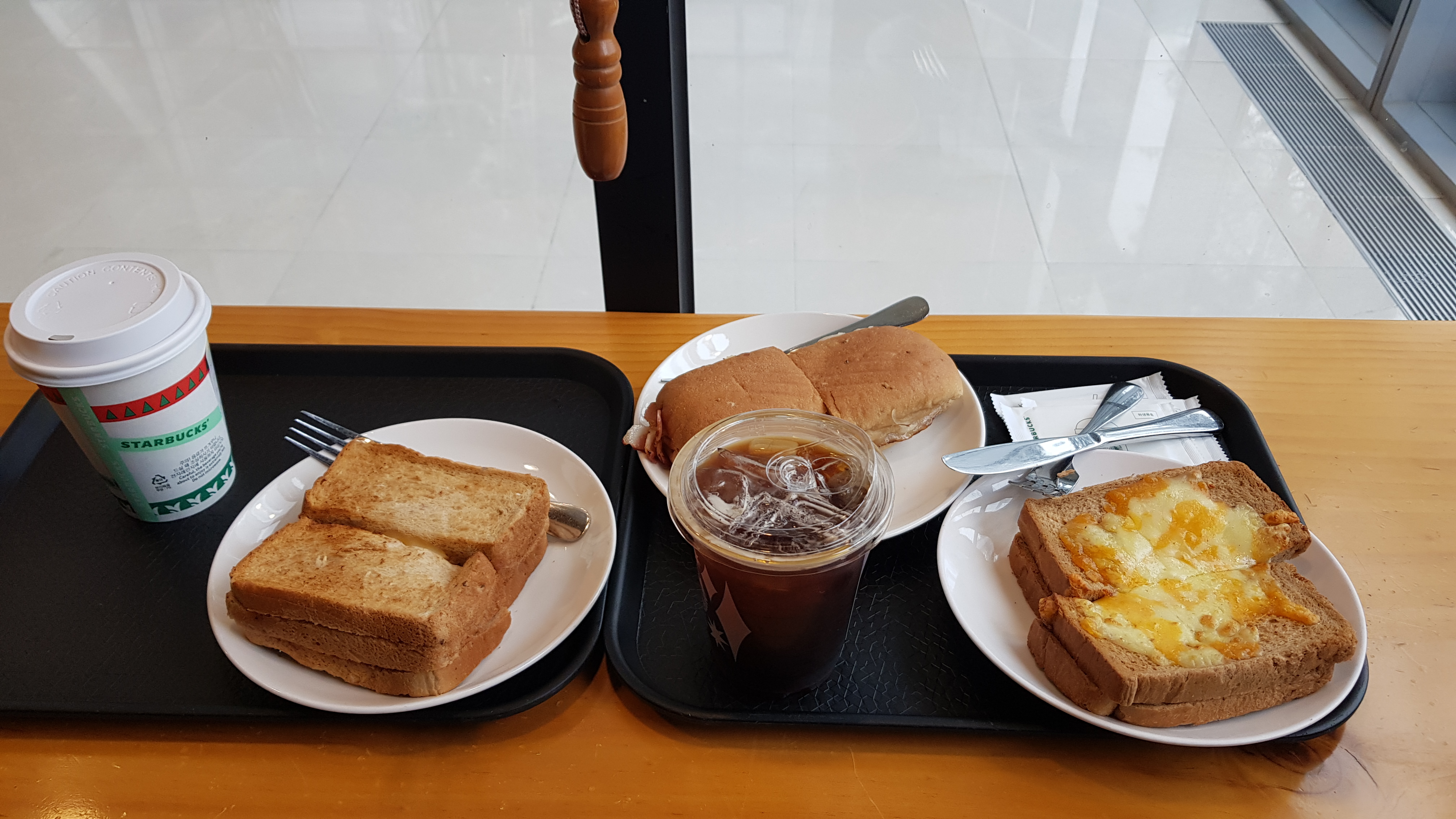 가는길이 너무 아쉬워 근처 스타벅스에서 샌휘치와 코오피를 마셔보아요...