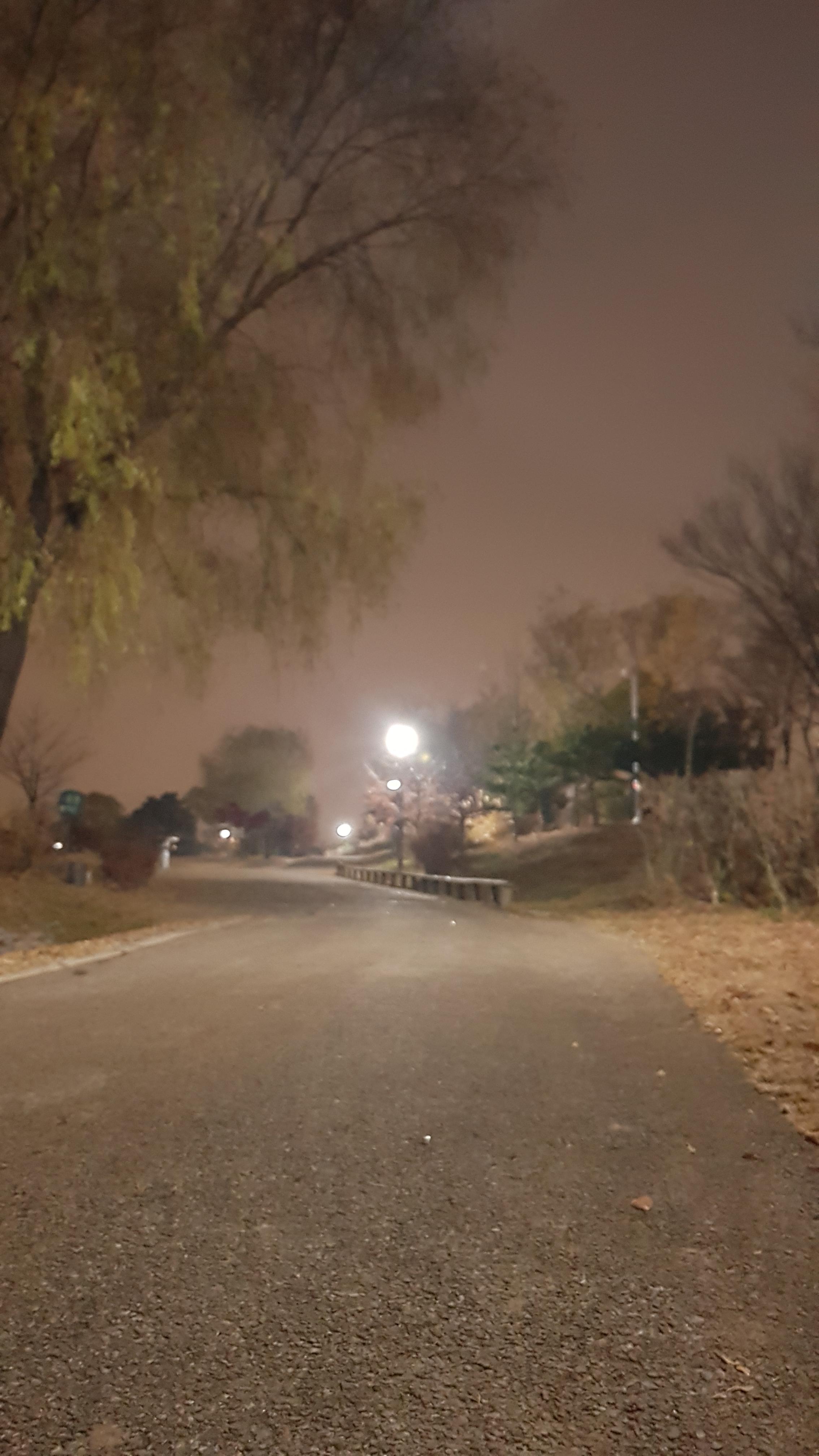 고기랑 밥이랑 비빔면이랑 과자랑 술이랑 등등 먹고 배가 찢어질거 같아서 밤에 산책을 했어요.