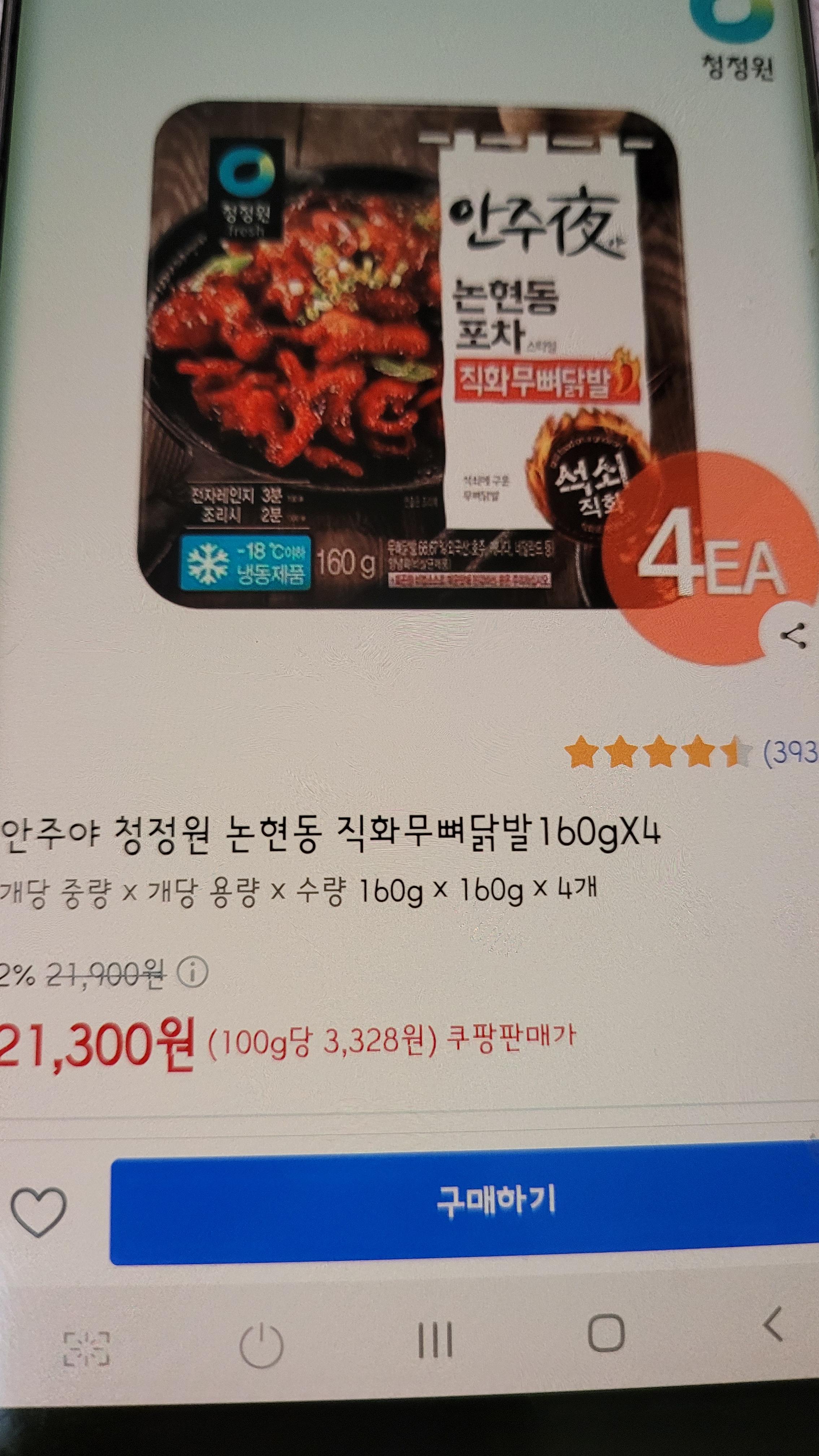 쿠팡 안주야 무뼈 닭발은 21,300원...